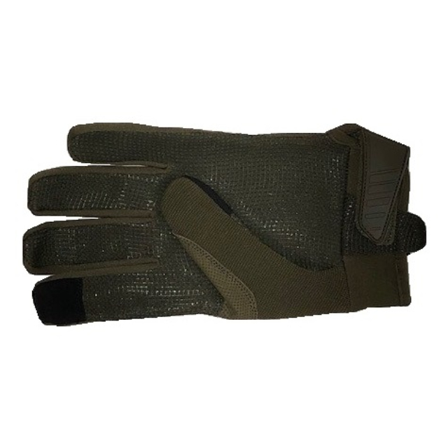Rubber protectie aan de buitenkant van de handschoen en met touchscreen uiteinden op de duimen en wijsvingers.