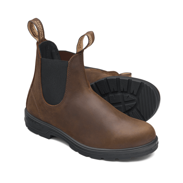 De antiek bruine leren classic boots met zwart elastiek, zijn ware iconen.