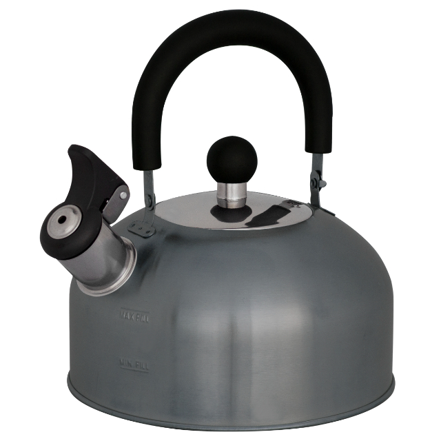 RVS camping fluitketel leverbaar met een inhoud van 1,5 liter. Gemaakt van lichtgewicht roestvrij staal met een hitte bestendig handvat en knop.