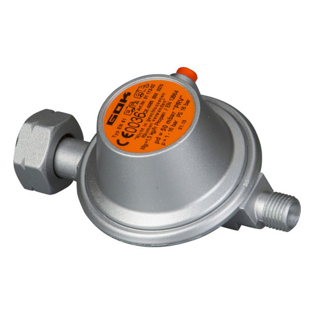 De Gok universele gasdrukregelaar heeft een gasdruk van 50 mbar en heeft een afblaasventiel.