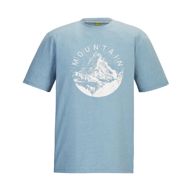 Het shirt heeft een gemeleerde stof met print van een “Mountain” voor een sportief uiterlijk.