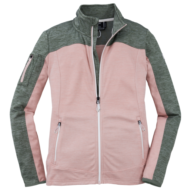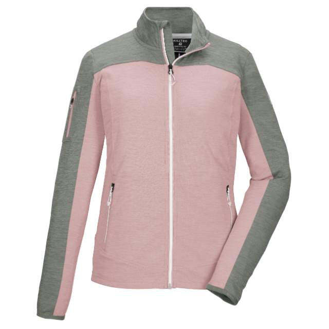 De Killtec Power Stretch damesjas met opstaande kraag maakt indruk met zijn opvallende kleurblokken.
