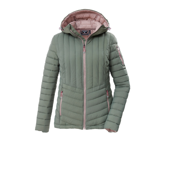 Deze dun gevoerde, gewatteerde damesjas van Killtec kan compact worden opgevouwen in zijn eigen zak en overal mee naartoe worden genomen.