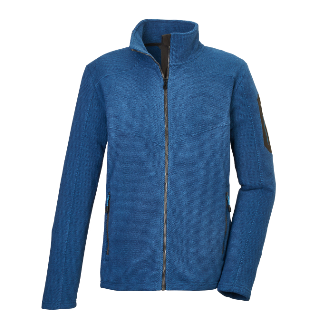 Het microfleece-herenjack met opstaande kraag en gemĂȘleerde look van Killtec kan worden gebruikt als dun overgangsjack