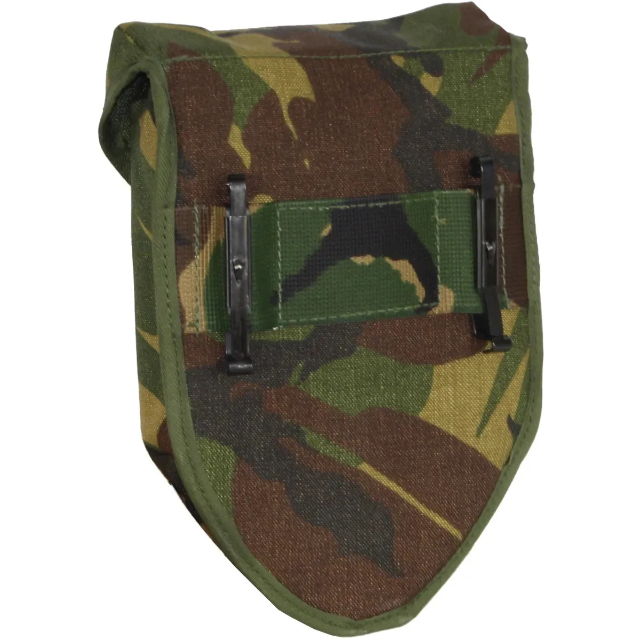Originele Zo goed als nieuwe camouflage hoes voor de drie-delige opvouwbare pionier schep gebruikt door het Nederlandse leger.