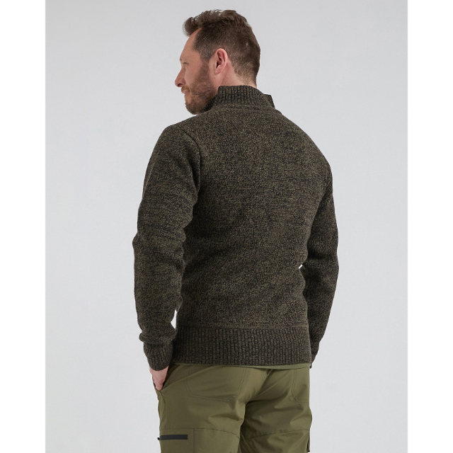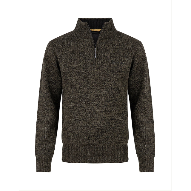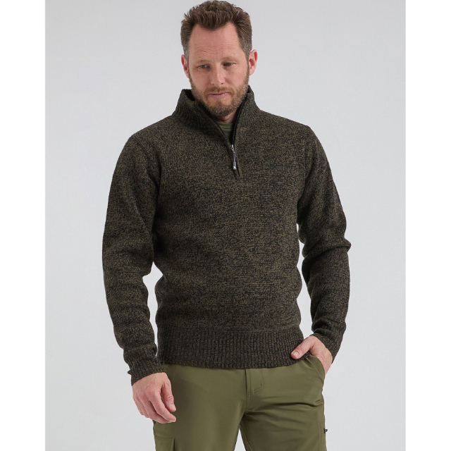 Met zijn opstaande kraag en halve ritssluiting biedt deze trui warmte en stijl.