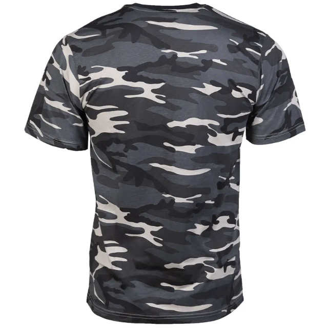 T-shirt met Korte mouw in een donkere camouflage met ronde hals. 100% Katoen, Kwaliteit 140/145 Gram/m2