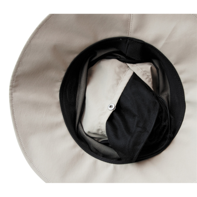 het afneembare muggengaas kunt u makkelijk opbergen in het aparte vakje bovenin de hoed.