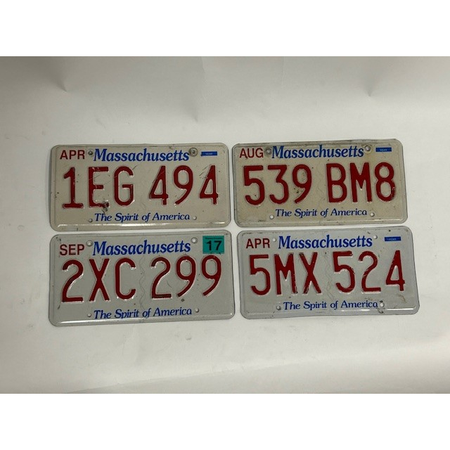 Origineel Amerikaans nummerbord van de staat Massachusetts met tekst aan de onderkant The Spirit of America.
