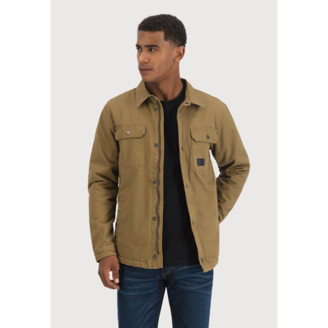 Robuust overshirt-jack in 100% katoen canvas dat utilitair design combineert met een comfortabele sherpa-voering van 100% polyester.
