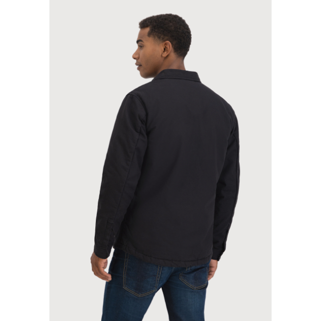 Robuust overshirt-jack in 100% katoen canvas dat utilitair design combineert met een comfortabele sherpa-voering van 100% polyester.